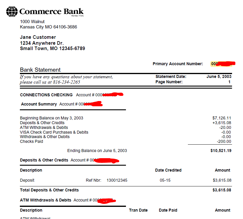 An example of digital (red marker) account masking is shown below. Click the picture to view a statement with masking done with a black sharpie.